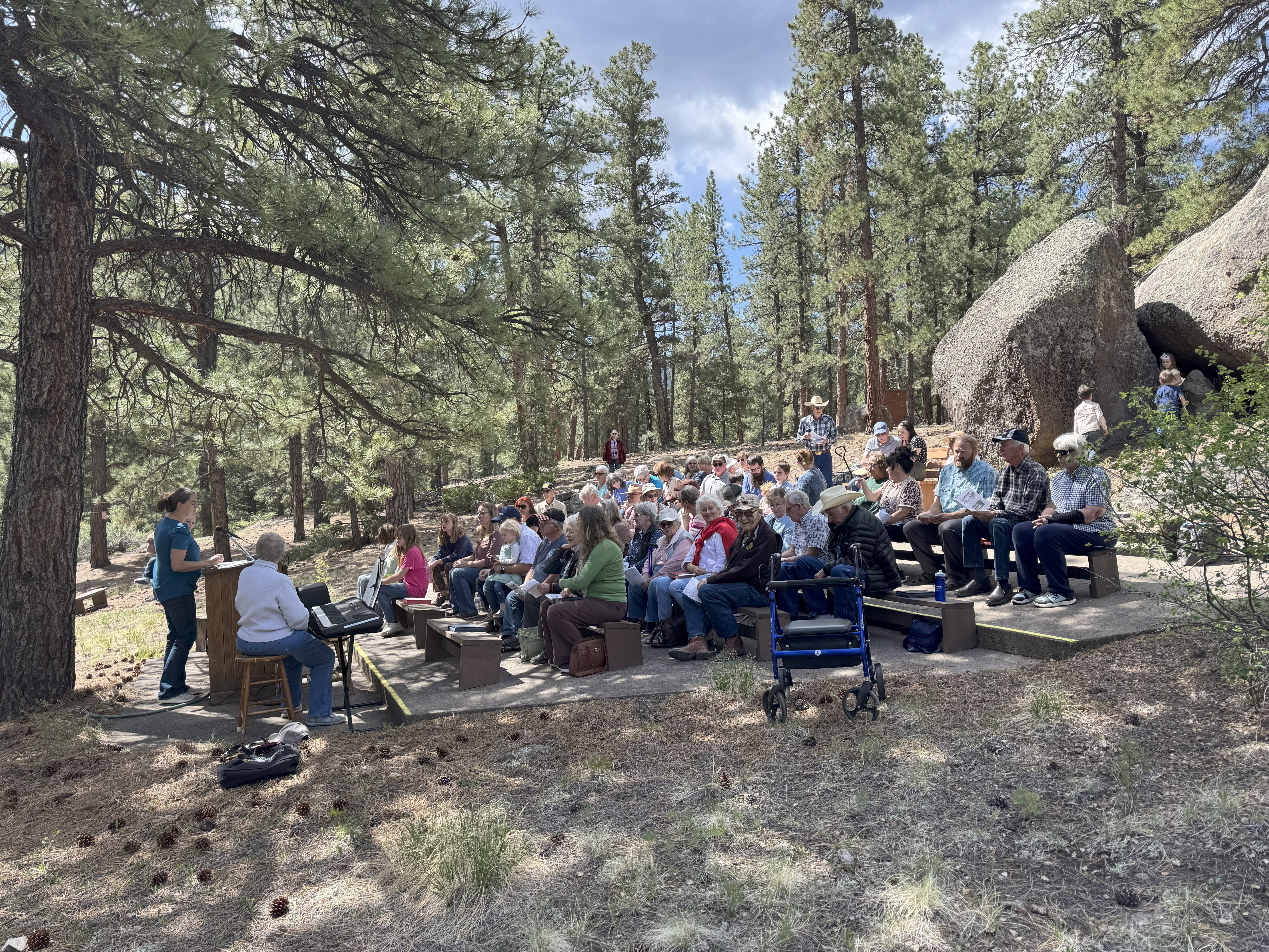 Green Cathedral seats up to 72 worshipers and has electricity for microphones, keyboards, etc.