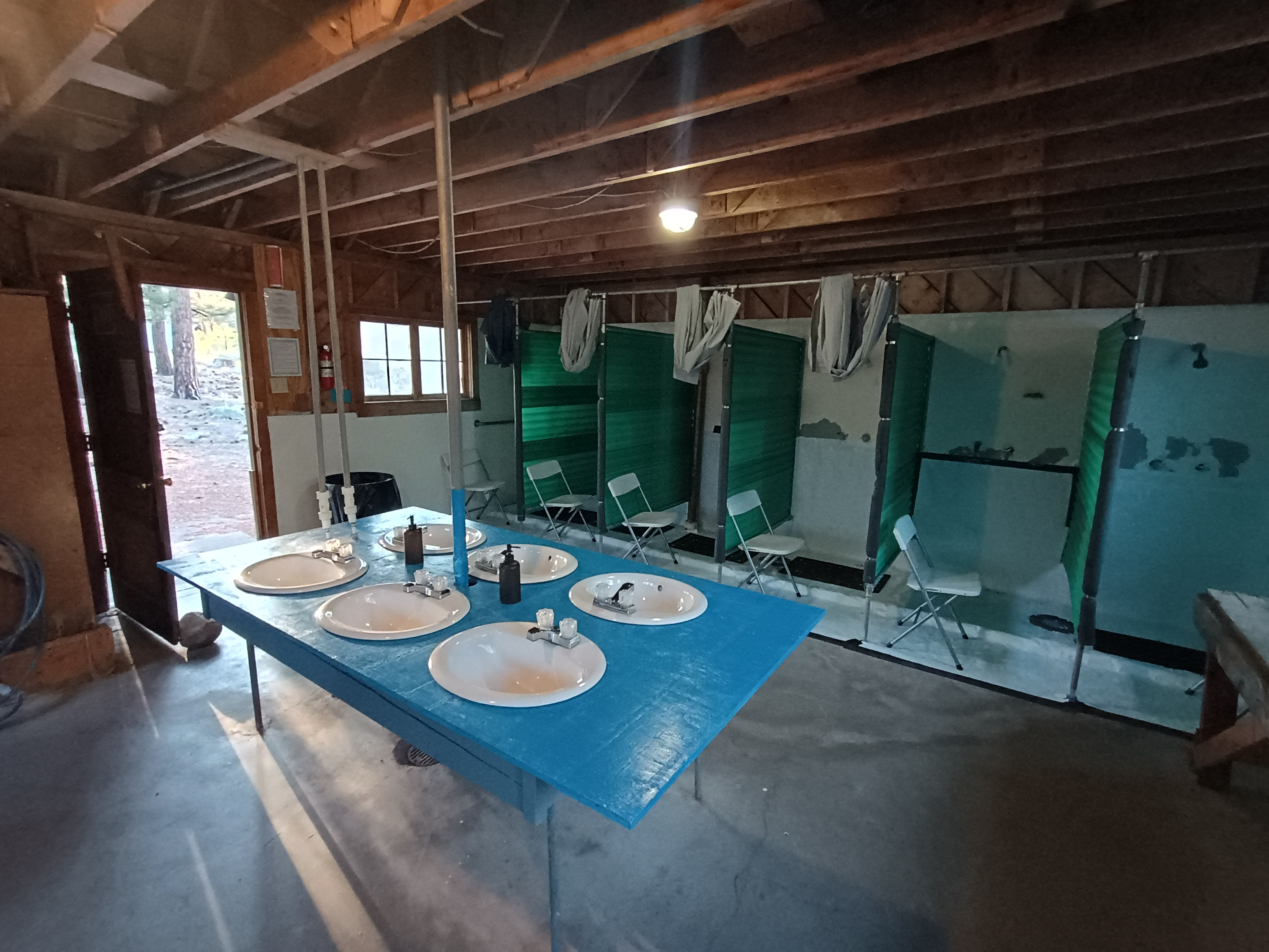 Each loop has a shower/restroom house. Partitioned shower stalls with curtains and individual toilet stalls provide privacy. The showers have comfortably warm water.