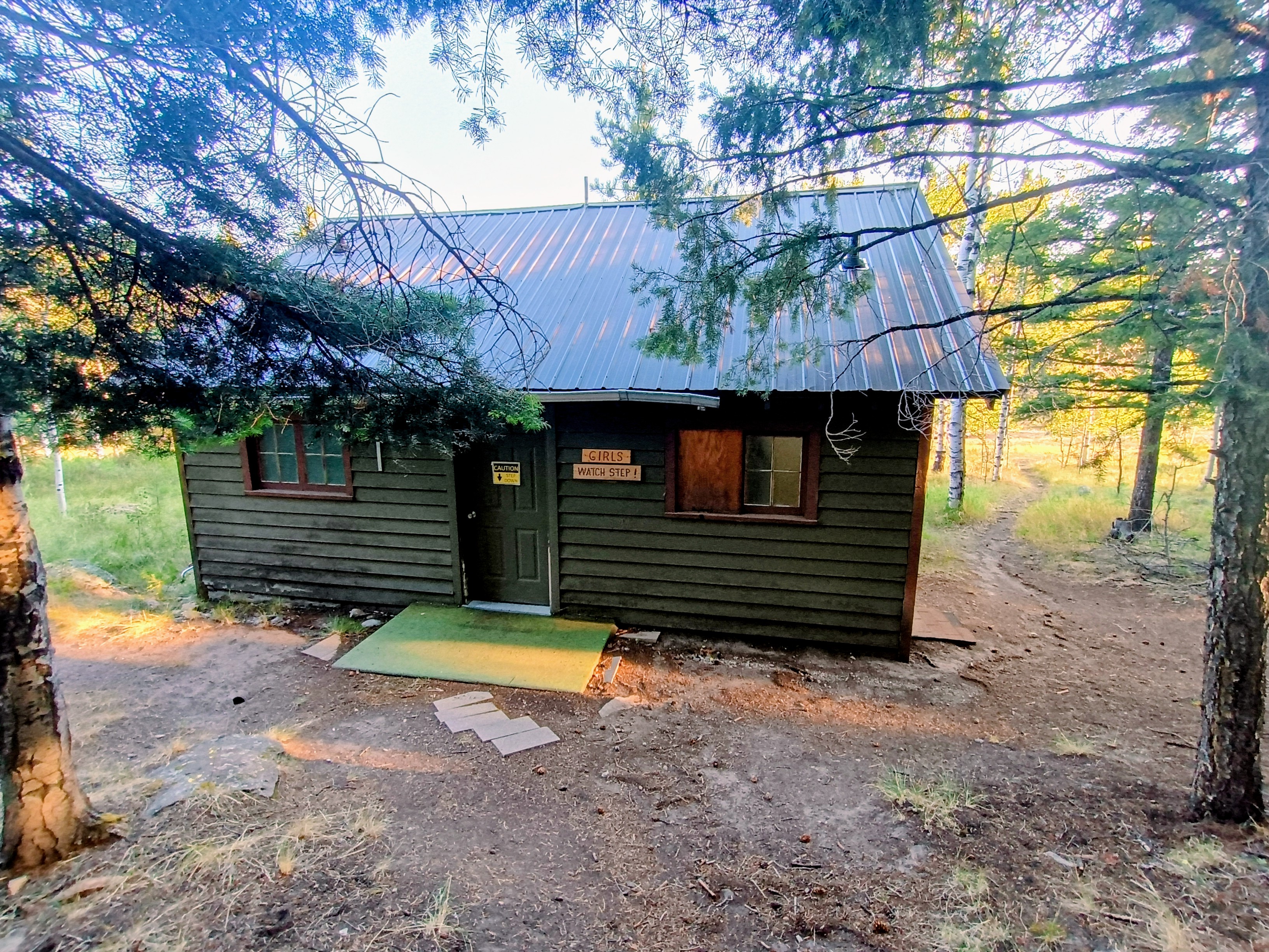 The cabins are arranged in two loops, four in the boys' loop and four in the girls'.